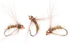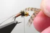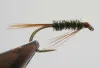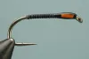 The Pheasant tail nymph is a true classic. The original was tied by Frank Sawyer using only copper thread and phesant tail fibers. This pattern has been elaborated a bit by Charles A.Garwood from North Carolina, and uses peacock herl for the abdomen and regular tying thread. |