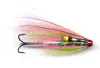 A mobile tailed baitfish pattern tied with organza and synthetic fibres |