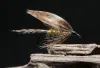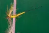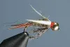 This fly used to be a twist fly like the yellow Twist of Lemon, but it changed and eventually lost the typical twisted body. It has a normal tinsel body and a thorax of peacock herl, but looks much like the Twist of Lemon. |