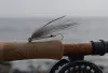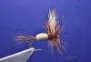 Later my friend and I ran into problems on our favorite stream, when the tiny Caënis dayflies hatched. The trout sipped the fresh emerged flies all over the water - but they rejected all the flies we offered. Then we found a note in a magazine saying, that the fly with the peculiar name - the 'Grey Duster' - should be the right medicine, if it was tied with a parachute hackle. |