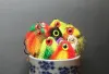 The Springtail has a soft and bendy body made from a boiled coil of colorful, elastic jewelry string |