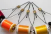 There are other ways than bead chain eyes to make eyes for a fly. Here are two ways: Copper thread and pearls and melted monofile. |