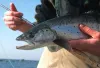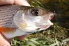 This is the end that counts to to most anglers: where the mouth is and where the fly is supposed to go. All these fish opened theirs over a hook, and they paid for it with a portrait. Pictures of fish from the very small sand eel to the very large steelhead. |