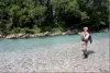 Fly fishing on the last day of the season in a never fished trout river in the Slovakian back country |