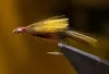 This fly used to be a twist fly like the yellow Twist of Lemon, but it changed and eventually lost the typical twisted body. It has a normal tinsel body and a thorax of peacock herl, but looks much like the Twist of Lemon. |