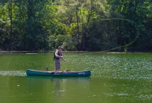 Mike Hogue bought a new solo canoe this summer. After fishing and using his solo canoe for awhile, he is now wondering why he waited so long to buy this boat.